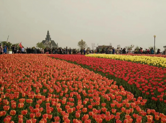 域外的風(fēng)車(chē)、郁金香和來(lái)自全國(guó)各地超高的人氣,特別是那種紅、黃、白、褐、紫、橙等多種花色在春風(fēng)中搖曳,或交織而行,或獨(dú)立成簇,或在高低起伏的土丘上隨意地流淌,宛如天上瑰麗的云彩,又像仙女們織出的緞綢,令人感到流光溢彩又精彩絕倫,看了花海就使心情更加愉悅起來(lái),花海中的荷風(fēng)半島、水岸印象、多彩秀湖、智能莊園的荷蘭風(fēng)格元素,在美侖美奐又色彩斑斕郁金香的襯托下,恍若置身在荷蘭國(guó)度的感覺(jué)。