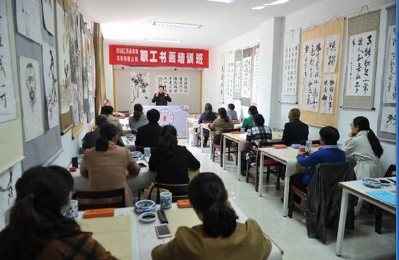 弘揚書法藝術(shù),進(jìn)一步引導(dǎo)和提升公司書畫愛好者的創(chuàng)作水平,培養(yǎng)和發(fā)現(xiàn)更多、更優(yōu)的藝術(shù)人才。2018年4月17日,蘆花草堂書法院和淮海農(nóng)場有限公司,在職工文化活動中心書畫室共同舉辦第四屆書畫愛好者培訓(xùn)班。中國書法家協(xié)會會員、江蘇省書法家協(xié)會會員、江蘇省青年書法家協(xié)會會員、鹽城市書法家協(xié)會理事,濱??h書畫家協(xié)會副主席左克成老師應(yīng)邀前來授課,公司近20名學(xué)員參加了當(dāng)天的授課和書畫創(chuàng)作。