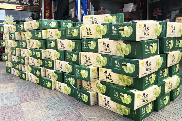 在?港農(nóng)場(chǎng)快遞發(fā)貨點(diǎn),瓜果蔬菜經(jīng)濟(jì)人楊宏林每天都要打包100多箱的玉茹甜瓜發(fā)往全國(guó)各地,其中有不少回頭客,也有不少老客戶介紹來(lái)的新客戶。“客戶從微信上下單,我到瓜農(nóng)地里現(xiàn)摘現(xiàn)賣,保證甜瓜的口感和新鮮度。”楊宏林說(shuō),從去年開始他就發(fā)現(xiàn)微信圈的甜瓜銷售也不錯(cuò),象他這樣每天通過(guò)微信發(fā)快遞銷售甜瓜量比較大的經(jīng)濟(jì)人農(nóng)場(chǎng)就十幾個(gè)。