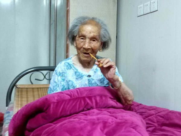在采訪中我們了解到,張瑞瑞老人從不串門,飲食起居比較規(guī)律,腸胃也較好。早上7點(diǎn)吃早餐,中午11點(diǎn)吃午餐,下午6點(diǎn)吃晚飯,每次吃飯都是自己裝自個兒吃,晚飯后散步回來就上床睡覺。