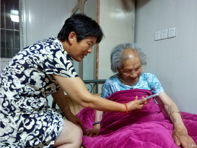 “我媽今年百歲生日那天還對著話筒,向來賓祝大家新年好哩!”老人的女兒唐淑蘭說,“前幾天,老人拿著我的手機看到才出生10天的玄孫還在睡覺時,還對著手機一個勁地喊,寶寶,寶寶,眼睛睜睜,眼睛睜睜……”