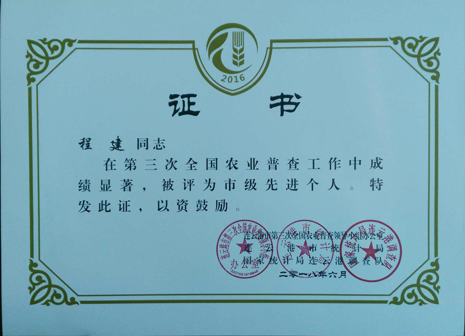 近日,從連云港市統(tǒng)計局傳來喜訊,東辛農(nóng)場合興社區(qū)居委會干事程建同志被市統(tǒng)計局授予“第三次全國農(nóng)業(yè)普查先進個人”榮譽稱號。