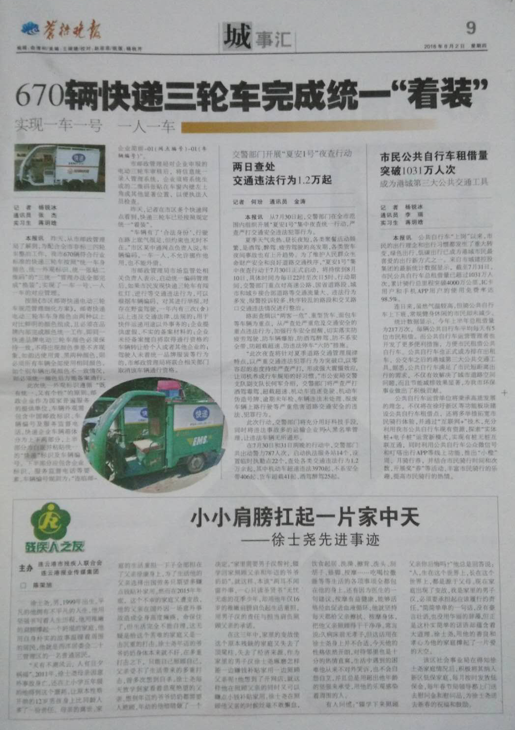 8月2日,《蒼梧晚報》刊登了《小小肩膀扛起一片家中天》的新聞報道,主要講述了東辛農(nóng)場西洋社區(qū)居委會居民徐士堯用稚嫩的肩膀撐起了一個坍塌的家庭,用自身樸實的故事溫暖著周圍居民的先進事跡。