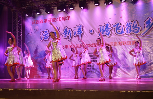 為慶祝改革開放40周年,積極推動駐射農(nóng)墾企業(yè)文化納入射陽文化發(fā)展大地圖工作,9月5日晚7點半,新洋農(nóng)場有限公司與射陽縣文廣局聯(lián)合舉辦“活力新洋 騰飛鶴鄉(xiāng)”聯(lián)誼演出。新洋領(lǐng)導(dǎo)陳守軍、潘元海、戴學(xué)林、仰海洲、王煜明、賀春峰,縣文廣局局長賀琰,副局長周克明,以及新洋職工居民近800人觀看演出。