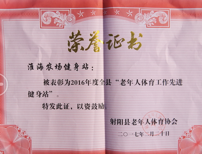 2016年5月,農(nóng)場太極隊(duì)伍已經(jīng)擴(kuò)充到60人左右的規(guī)模,為了讓淮海的太極運(yùn)動成為農(nóng)場的品牌項(xiàng)目,趙梅生和其他太極隊(duì)員一起,在淮海農(nóng)場工會注冊成立了太極舞蹈隊(duì),并制定了相應(yīng)的章程和旗幟,讓在這里喜愛太極運(yùn)動的職工居民有一個活動的陣地和平臺。