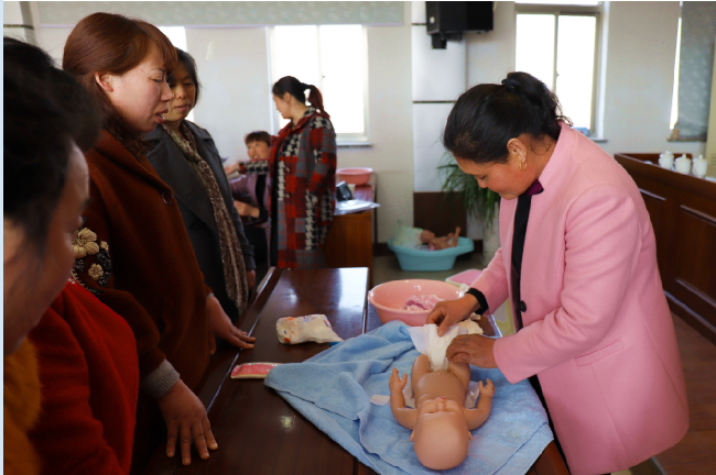 經(jīng)過農(nóng)場(chǎng)各級(jí)領(lǐng)導(dǎo)的關(guān)心和支持,我的干勁也很大,終于在2017年底前成功甩掉了貧困戶的帽子。圖為李海霞在去年在新洋農(nóng)場(chǎng)協(xié)辦的月嫂培訓(xùn)班上的鏡頭。
