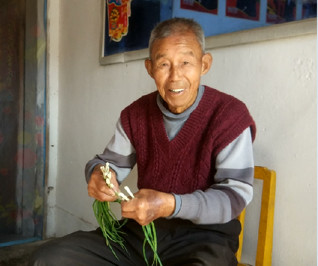 李朋友飲食比較清淡,少肉多素,油鹽也不多。每天下午2點(diǎn)左右,他會(huì)定時(shí)喝些兒孫們孝敬給他享用的腦白金、牛奶等營養(yǎng)品。每月有近7000元的工資,想買什么就買什么,那么多子女一個(gè)也不過問,只是由著他怎么處理,但老人從不亂花瞎用。老人很會(huì)做人,也會(huì)討兒孫們的歡心,每當(dāng)他用存單積攢到6萬元錢時(shí),就會(huì)6個(gè)子女一家1萬地均分,讓兒孫們貼補(bǔ)家用。李朋友對子女出手大方,教育投入上一點(diǎn)也不含糊,一定要他們練好書,學(xué)會(huì)技能,所以他的子孫都在自食其力地工作,這讓李朋友很是欣慰。當(dāng)然,李朋友在兒孫中威望極高,逢年過節(jié)20多個(gè)子孫紛紛來到家中團(tuán)聚,給老人帶來孝敬的物品,為老人請安祝福,讓老人的晚年生活充滿了快樂!圖為李朋友老人在做晾被栽菜和擇菜時(shí)的鏡頭。