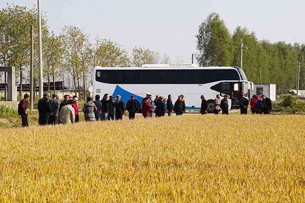 老干部一行先后參觀了場(chǎng)頭、水稻在田長(zhǎng)勢(shì)長(zhǎng)相、高效農(nóng)業(yè)示范基地、正反旋播種以及水稻收割現(xiàn)場(chǎng),聽取了講解員相關(guān)情況介紹,詳細(xì)了解新洋農(nóng)業(yè)發(fā)展情況。