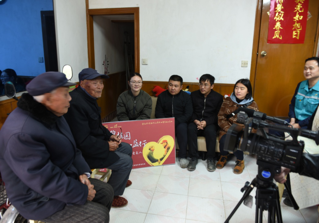 為響應(yīng)十九大精神號召,關(guān)心慰問革命老兵,接受紅色文化洗禮,在毛主席誕辰即將到來之際,人民日報數(shù)字鹽城特聯(lián)合江蘇風(fēng)光國際旅行社,鹽城碧桂園,卓牧羊奶等愛心企業(yè)推出“尋找老兵---我想帶你去北京”活動。11月16日下午,活動欄目組人民日報數(shù)字鹽城工作人員和碧桂園志愿者一行8人來到淮海農(nóng)場,實地采訪拍攝和慰問了九旬抗戰(zhàn)老英雄、90歲殘疾老人崔繼中的事跡,以此來弘揚革命老英雄·傳承紅色教育,并讓更多的人不忘初心,牢記使命,為實現(xiàn)偉大的中國夢貢獻各自的青春和力量。