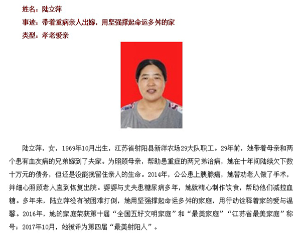 隨著陸立萍當(dāng)選“鹽城好人”、祁兆花獲評射陽縣“最美家庭”、鹽城市第二季“最美巾幗”的消息不斷傳來,她們的勵志、感人事跡在新洋廣泛傳播,獲得了無數(shù)好評,并在全場形成了典型引路、爭做好人的良好風(fēng)尚。