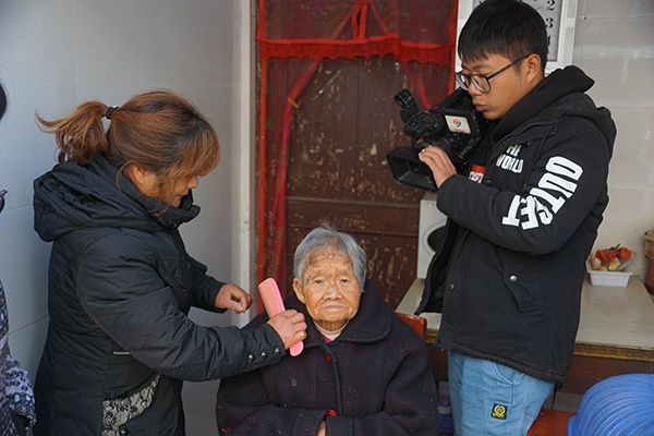 12月12日,射陽(yáng)縣電視臺(tái)記者一行到新洋農(nóng)場(chǎng)采訪拍攝百歲老人姚大姐,探尋她的長(zhǎng)壽之道。