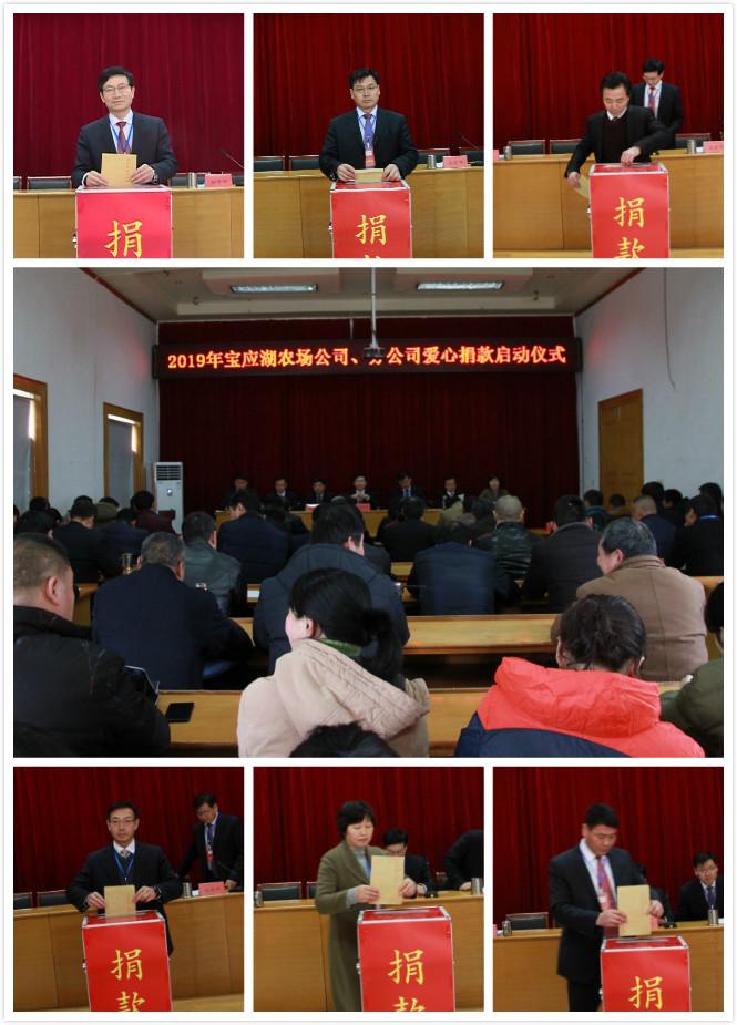“這是心的呼喚,這是愛(ài)的奉獻(xiàn)……”2月28日,伴隨著愛(ài)的旋律,寶應(yīng)湖農(nóng)場(chǎng)有限公司、分公司啟動(dòng)2018年愛(ài)心捐款儀式,以涓滴善款匯聚人間大愛(ài)。