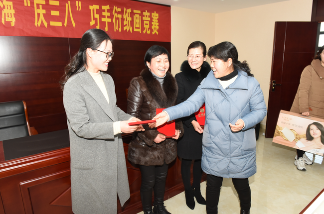 3月8日這一天,正是第109個(gè)“三八”國(guó)際勞動(dòng)?jì)D女節(jié),同時(shí)當(dāng)天上午也是淮海農(nóng)場(chǎng)48名選手在農(nóng)場(chǎng)社區(qū)二樓參加“慶三八”巧手衍紙畫競(jìng)賽的一天。當(dāng)天上午,16個(gè)基層單位工會(huì)衍紙畫創(chuàng)作小組(每隊(duì)3人)經(jīng)過精心創(chuàng)作,并經(jīng)裁判組裁判的綜合評(píng)定,來自淮海醫(yī)院代表隊(duì)的選手黃海英、黃丹、顧涵組合以一幅《嫻靜》獲得一等獎(jiǎng);來自供應(yīng)貿(mào)易部代表隊(duì)的辛道紅、孟玲娟、夏紅云以一幅《忘憂》獲得了二等獎(jiǎng);七分場(chǎng)社區(qū)代表隊(duì)的徐紅娟、陳愛民、陳武英以作品《欣欣向榮》獲得了三等獎(jiǎng)。