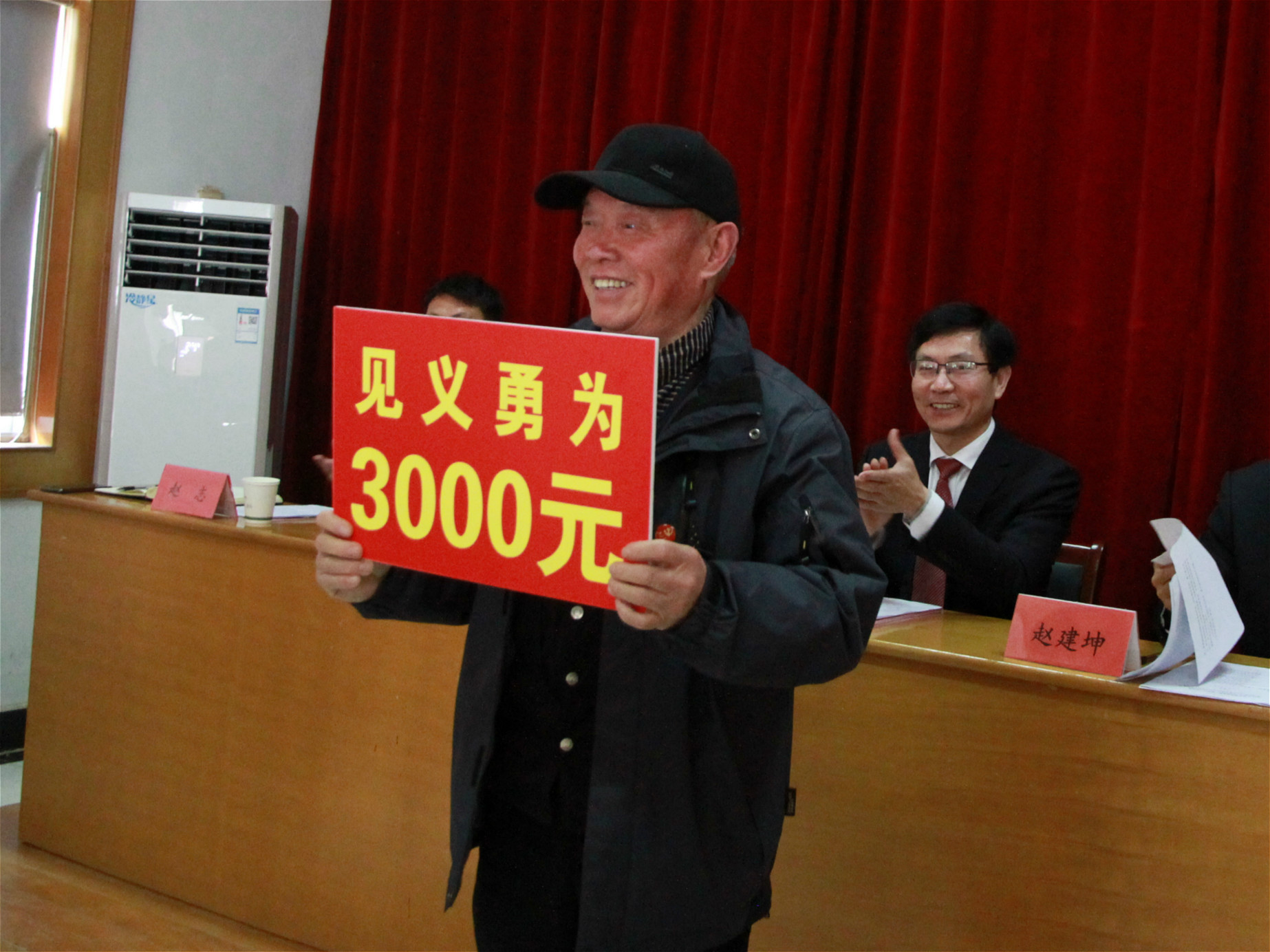 3月6日,寶應湖農場有限公司黨群工作會議上掌聲雷鳴,農場公司見義勇為英雄朱壽成手捧獎狀、獎金,接受了大家的禮遇。