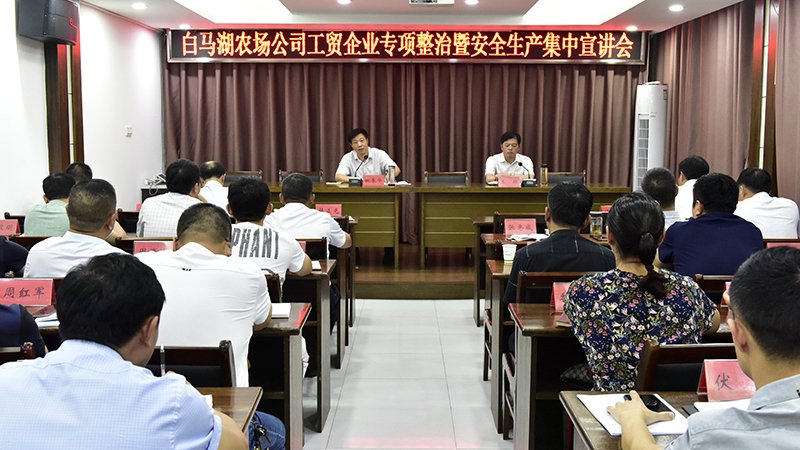 為深入學(xué)習(xí)貫徹習(xí)近平關(guān)于安全生產(chǎn)的重要思想和黨中央、國務(wù)院決策部署,認(rèn)真落實(shí)省、集團(tuán)公司和地方政府相關(guān)要求,扎實(shí)推進(jìn)安全生產(chǎn)專項(xiàng)整治,保證實(shí)現(xiàn)安全生產(chǎn)專項(xiàng)整治重點(diǎn)領(lǐng)域宣傳教育“全覆蓋”,8月27日上午,白馬湖農(nóng)場公司召開工貿(mào)企業(yè)專項(xiàng)整治專題部署暨安全生產(chǎn)集中宣講會(huì),由黨委書記姚春華作安全生產(chǎn)專題宣講,并邀請淮安區(qū)應(yīng)急管理局副局長陳華昌作安全生產(chǎn)專項(xiàng)整治專題部署。
