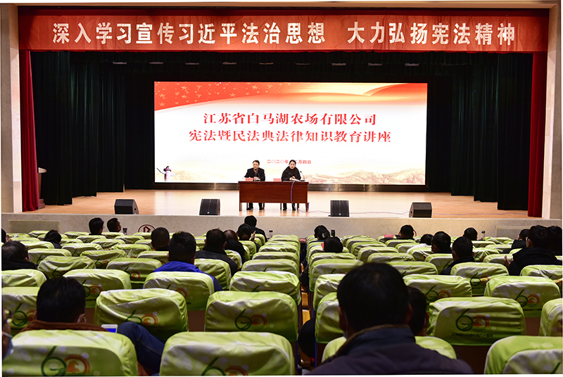 12月4日上午,在我國第七個國家憲法日和第三個“憲法宣傳周”之際,白馬湖農(nóng)場公司圍繞“深入學(xué)習(xí)貫徹習(xí)近平法治思想 大力弘揚(yáng)憲法精神”這一主題,通過舉辦憲法暨民法典法律知識教育講座,同時啟動開展“法治宣傳月”和“憲法宣傳周”活動,深刻宣傳領(lǐng)會黨的十九屆五中全會精神,深化了解把握全面依法治國的重大意義。