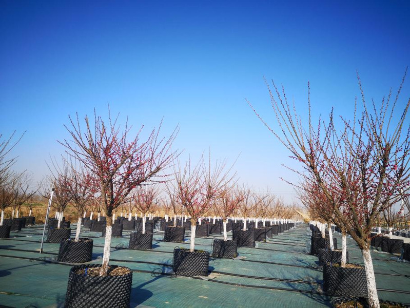 3月上中旬,紅梅始盛開;3月中下旬,絕大多數苗木吐翠展葉;4月中上旬北美海棠滿樹繁花;4月下旬中華木繡球淡綠花傲然枝頭;5月始11月終,月季園多品種競相綻放;6月初7月底,紫薇、木槿、無盡夏綿延整個夏季;8至9月,基地最富生機,恰如青年風華正茂;10月,色葉樹在冷空氣的次次入侵下,漸變成黃、橙、紅色,雞爪槭的色相美翩然而至;11月始,無刺枸骨滿枝紅果累累、經冬不凋;12月,常綠樹凌寒孑立,落葉樹像一副副水墨畫,繪就干支線條美;來年的1至2月,冰雪塵封,土地里孕育著下一年的盎然生機。