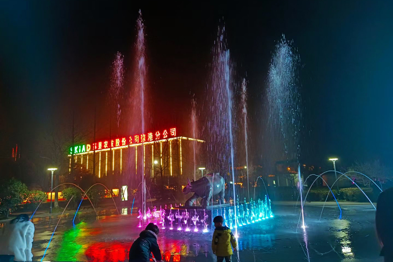 今年以來(lái),為進(jìn)一步扮靚農(nóng)場(chǎng)小城鎮(zhèn),農(nóng)場(chǎng)投資70多萬(wàn)元實(shí)施農(nóng)和廣場(chǎng)原音樂(lè)噴泉景觀進(jìn)行升級(jí)改造項(xiàng)目,編排了《我和我的祖國(guó)》《紅旗飄飄》《夢(mèng)駝鈴》《讓我們蕩起雙槳》《長(zhǎng)江之歌》《夜夜夜漫長(zhǎng)》6首歌曲。夜色降臨,農(nóng)和廣場(chǎng)的音樂(lè)噴泉現(xiàn)場(chǎng),一道道水柱從廣場(chǎng)中噴起,燈光、水幕、音樂(lè)交織在一起,伴隨著音樂(lè)旋律的起伏,變幻出一組組極富動(dòng)感的優(yōu)美造型,構(gòu)成音樂(lè)噴泉水舞秀,吸引眾多居民前來(lái)圍觀欣賞拍攝?!拔业募亦l(xiāng)好美??!為農(nóng)場(chǎng)美景點(diǎn)贊,漂亮、弶農(nóng)一道美麗的風(fēng)景……”發(fā)布到網(wǎng)絡(luò)平臺(tái)上獲無(wú)數(shù)網(wǎng)友的點(diǎn)贊。五彩的燈光、歡快的音樂(lè),為弶農(nóng)迷人的夜晚增添了一份美輪美奐的視覺(jué)和聽(tīng)覺(jué)的盛宴。
