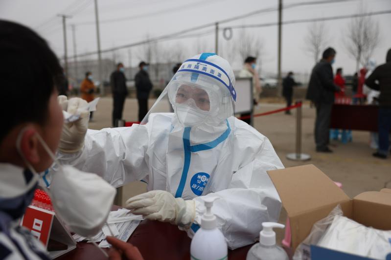 3月10日早上9點左右, 在崗埠農(nóng)科所核酸檢測點,崗埠醫(yī)院的醫(yī)護人員刁靜靜累得趴在工作臺上,出現(xiàn)了頭暈、嘔吐現(xiàn)象,可她還堅持在工作崗位,在同事和領(lǐng)導(dǎo)的關(guān)心和勸說下,她才不舍地離開工作崗位。