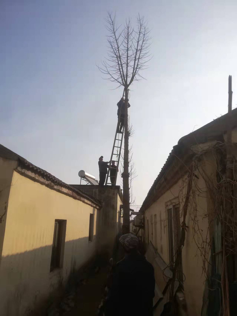 3月9日上午8時(shí),按照事先制定的方案,由農(nóng)場社區(qū)環(huán)綠所所長張海濤帶隊(duì),城西居委會協(xié)助,和環(huán)綠所員工一行7人來到幸福小區(qū)。首先對最高最粗最難砍伐的銀杏樹進(jìn)行砍伐。為防止大樹倒下砸壞兩邊房屋,有砍伐經(jīng)驗(yàn)的環(huán)綠所老員工李素兵現(xiàn)場提出:“從上到下,分段砍伐?!痹谡鞯脧埶L及眾人的同意后,李素兵立馬系好安全帶攀上樹頂,用手工鋸將銀杏樹頂端的叉枝逐個(gè)鋸掉,然后又用電鋸將銀杏樹從上到下分4段切割,最終平穩(wěn)將銀杏樹砍伐。緊接著一行人又來到另兩顆樹的地方,用同樣的方式,互相協(xié)作,很快又將兩顆樹砍伐?,F(xiàn)場圍觀的居民群眾對砍伐房前屋后到三顆樹個(gè)個(gè)拍手稱快。李志明老夫婦倆看到自家廚房后面10多米高的銀杏樹被伐,說了一句:“從今往后總算能睡個(gè)安穩(wěn)覺了,謝謝大家,謝謝!謝謝……”