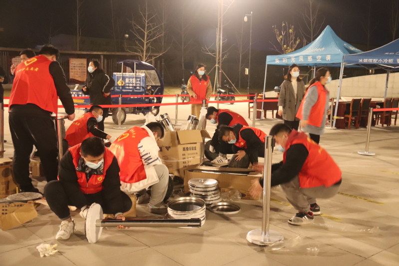 一名黨員就是一面旗幟。黨員志愿者們身穿紅馬甲,忙碌的身影,時(shí)時(shí)穿梭在機(jī)關(guān)門口、立新公園采樣點(diǎn)之間,成為夜空下一抹靚麗的風(fēng)景線。搬運(yùn)隔離欄,擺放桌椅,搭起遮陽篷,拉起警戒線,布設(shè)指引標(biāo)志,劃定一米線,配齊消毒液、醫(yī)療廢物垃圾桶,對現(xiàn)場布置進(jìn)行查漏補(bǔ)缺,只為居民群眾提供一個(gè)安全有序的核酸檢測環(huán)境。