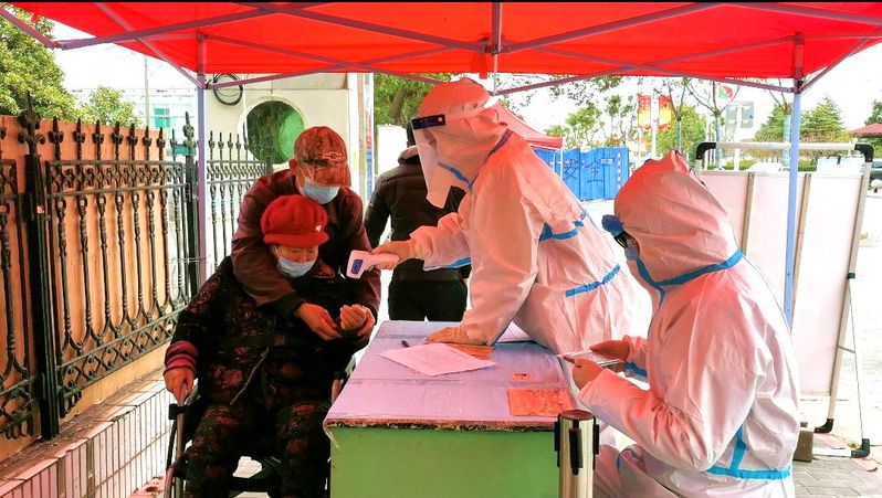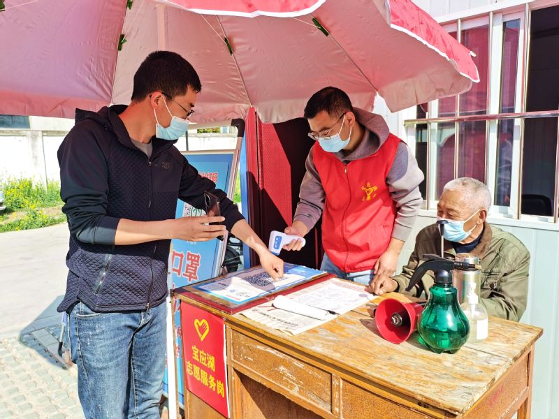 在寶應(yīng)湖農(nóng)場固定核酸檢測點(diǎn),有這樣一群人,他們身穿白色防護(hù)服忙著測溫掃碼、維持秩序、采集信息……,“您好請掃一下場所碼,近期沒有外出吧?”“您好,我給您測量一下體溫”“請大家保持一米線,核酸做完及時(shí)離開,不交談不聚集”一句句叮囑傳遞著疫情期間的濃濃關(guān)懷,在大家的耳畔久久回蕩。