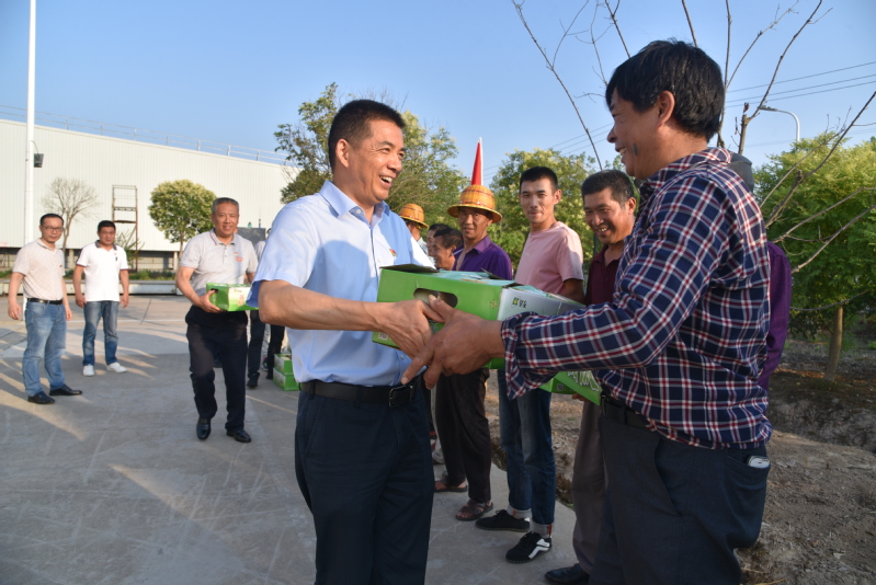 在倉(cāng)儲(chǔ)部門(mén)口,公司黨委書(shū)記、董事長(zhǎng)郭世平,黨委副書(shū)記、總經(jīng)理吳善河率公司領(lǐng)導(dǎo)班子成員為89名勞務(wù)外包一線(xiàn)工作人員送去了清甜涼爽的黃金瓜,同時(shí)親切地詢(xún)問(wèn)了一線(xiàn)員工的身體狀況和工作情況,對(duì)他們的辛勤付出表示感謝,并千萬(wàn)叮囑大家炎夏期間注意避暑、保重身體,合理安排工作時(shí)間,避開(kāi)高溫酷暑時(shí)段,也希望他們能夠深刻感受到公司黨委的人文關(guān)懷和“在廠(chǎng)如同在家”的幸福感。