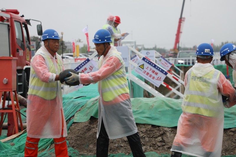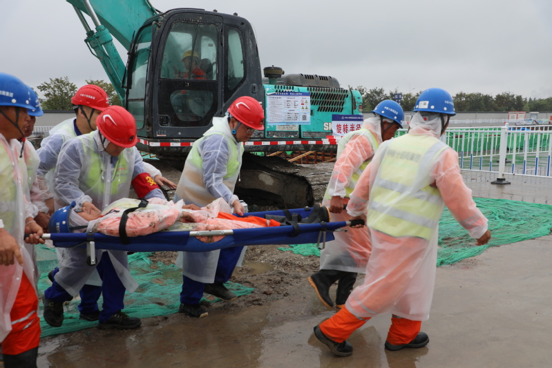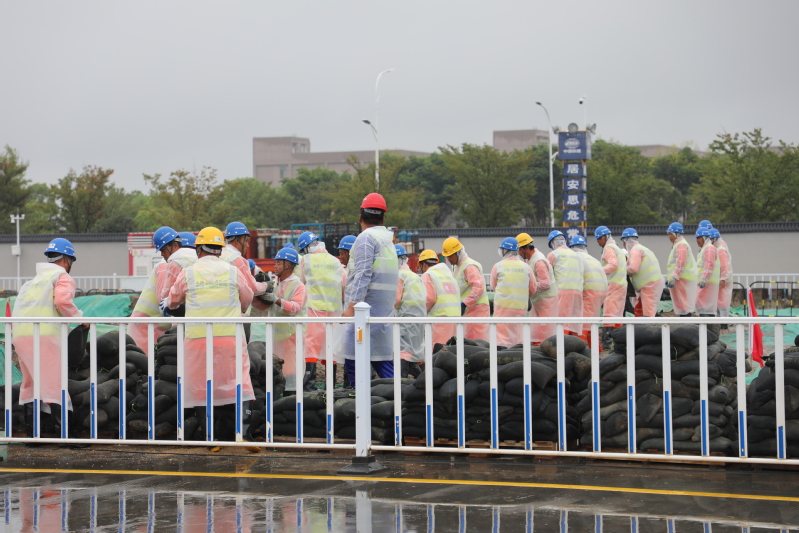 為進(jìn)一步樹牢安全發(fā)展理念、壓實安全生產(chǎn)責(zé)任、防范化解重大風(fēng)險、提升干部職工應(yīng)急處置能力,8月29日,江心沙攜手中鐵十四局海太長江隧道工程項目部開展防臺防汛綜合應(yīng)急演練。圖為筑堤防洪、醫(yī)療救助、緊急撤離等演練場景。