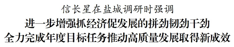 10月28日,省委書記信長星到鹽城市鹽都區(qū)、東臺(tái)市調(diào)研。他強(qiáng)調(diào),四季度是全年決勝階段,要深入學(xué)習(xí)貫徹習(xí)近平總書記重要講話精神,錨定年度目標(biāo)任務(wù),堅(jiān)定信心、把握機(jī)遇,進(jìn)一步增強(qiáng)抓經(jīng)濟(jì)、促發(fā)展的拼勁、韌勁、干勁,推動(dòng)高質(zhì)量發(fā)展取得新成效,努力為全省發(fā)展大局貢獻(xiàn)更大力量。