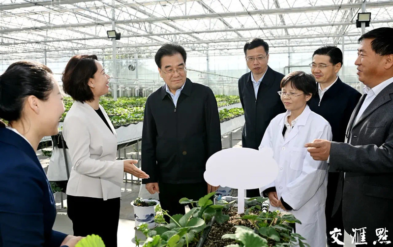 鹽都現(xiàn)代農(nóng)業(yè)產(chǎn)業(yè)示范園是集特色種植、休閑觀光、美麗鄉(xiāng)村于一體的國家級(jí)農(nóng)村創(chuàng)新創(chuàng)業(yè)園區(qū)。信長星聽取園區(qū)規(guī)劃建設(shè)情況介紹,參觀草莓組培中心、育苗中心、多層栽培和新品種示范棚、農(nóng)產(chǎn)品檢測(cè)中心等,并與正在開展技術(shù)指導(dǎo)的省農(nóng)科院專家交流。他指出,推進(jìn)農(nóng)業(yè)現(xiàn)代化是實(shí)現(xiàn)高質(zhì)量發(fā)展的必然要求,要強(qiáng)化科技支撐,注重全產(chǎn)業(yè)鏈發(fā)展,探索一二三產(chǎn)融合新模式,不斷提升農(nóng)產(chǎn)品知名度和美譽(yù)度,促進(jìn)農(nóng)業(yè)高質(zhì)高效、鄉(xiāng)村宜居宜業(yè)、農(nóng)民富裕富足。園區(qū)正在進(jìn)行直播帶貨,“90后”專業(yè)合作社負(fù)責(zé)人熱情推介當(dāng)季新品。得知這位“新農(nóng)人”大學(xué)畢業(yè)后扎根農(nóng)村,成長為草莓種植的行家里手,還帶領(lǐng)村民們?cè)鍪罩赂?,信長星連連稱贊,鼓勵(lì)她再接再厲,在廣袤的田野上施展才華、大顯身手。