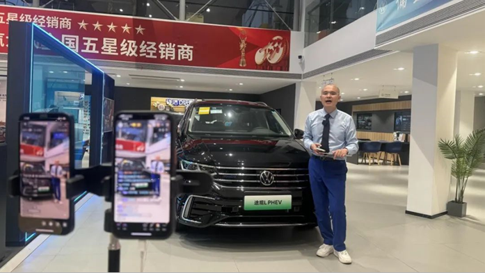 “不是任何人都適合面對(duì)鏡頭,所有銷(xiāo)售顧問(wèn)必須輪播上崗,通過(guò)全員直播選拔優(yōu)秀主播人員和銷(xiāo)售支持。”市場(chǎng)專(zhuān)題會(huì)議上,蘇舜對(duì)直播營(yíng)銷(xiāo)的人員架構(gòu)和主播的選拔提出了明確要求。蘇舜年輕人居多,他們不僅充滿活力,而且對(duì)新鮮事物感興趣,公司從中挑選出形象好、口才出眾、專(zhuān)業(yè)能力強(qiáng)等方面均較為優(yōu)異的員工,經(jīng)過(guò)培訓(xùn)后組成主播團(tuán),輪流在網(wǎng)絡(luò)上展示自我,試播通過(guò)后再擇優(yōu)確定最終人選,讓員工既下得了車(chē)間,還上得了直播間。目前,公司11家4S店直播營(yíng)銷(xiāo)團(tuán)隊(duì)均為“1+1+3”的架構(gòu)(即:1名專(zhuān)職主播、1名兼職主播和邀約專(zhuān)員、銷(xiāo)售顧問(wèn)、服務(wù)顧問(wèn)3名銷(xiāo)售支持人員),形成類(lèi)似DCC的直播小組協(xié)同作戰(zhàn),主播人員中既有企業(yè)一線員工,也有基層管理崗位人員。