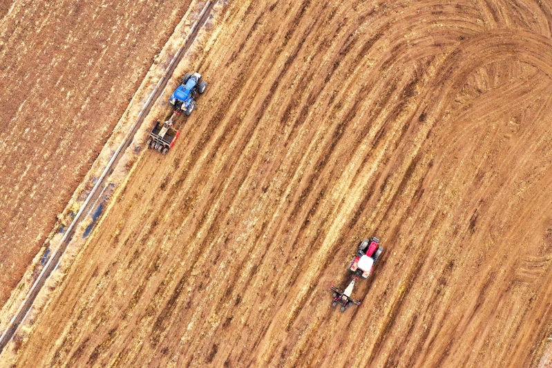 2月6日,江蘇農(nóng)墾新洋農(nóng)場組織北斗衛(wèi)星平地機(jī)對高標(biāo)準(zhǔn)農(nóng)田進(jìn)行厘米級精度的激光土地平整作業(yè),為“春耕”水稻育秧做好準(zhǔn)備。