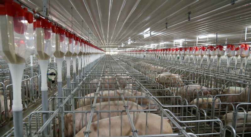 廣西農(nóng)墾永新畜牧集團全自動輸料、全環(huán)境控制密閉連廊豬舍