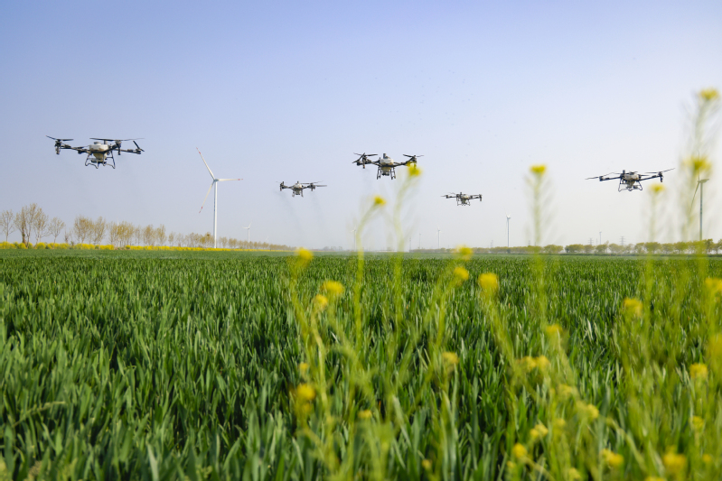 4月10日,射陽縣江蘇農(nóng)墾新洋農(nóng)場(chǎng)組織農(nóng)技人員,對(duì)田間小麥開展無人機(jī)飛防作業(yè)。該農(nóng)場(chǎng)通過智能化作業(yè)做好田間作物管理,助力夏糧豐收。 張偉生 攝