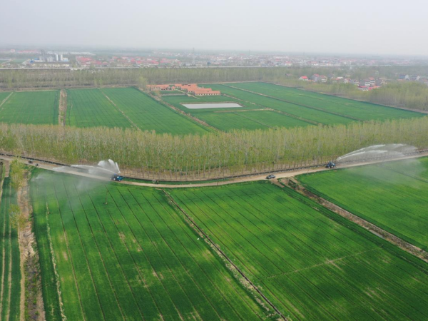 相較傳統(tǒng)漫灌,新技術每畝可節(jié)省水資源60%以上,灌溉時間、成本顯著下降;因水肥同步利用率提升,小麥有效分蘗數(shù)增加,預計每畝可增產糧食100斤,實現(xiàn)抗旱、節(jié)水、增產的效果。