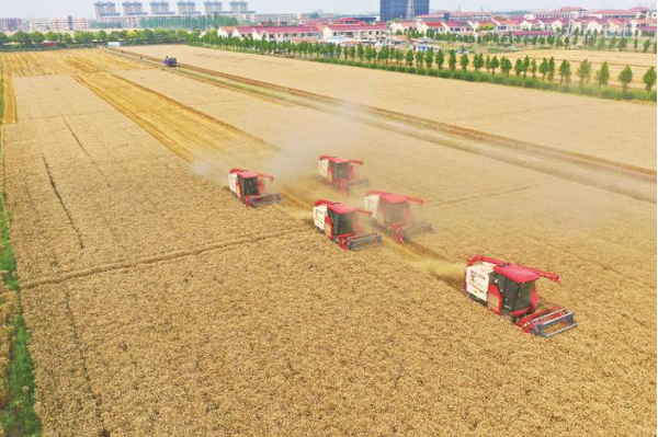 24日,隨著5臺收割機(jī)在田間來回穿梭,江心沙農(nóng)場本部小麥正式開鐮收割,吹響“本部+外拓+全托管”3萬余畝夏糧收割會戰(zhàn)集結(jié)號。全力以赴趕進(jìn)度,在確保顆粒歸倉的同時,為水稻移栽、夏玉米播種等騰出空間、搶出時間,實(shí)現(xiàn)高效騰茬和收、種、管無縫銜接。