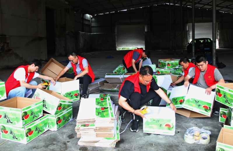 日前,南通江心沙農(nóng)場接到一筆1300余箱西瓜訂單,急需人手幫助進(jìn)行包裝、搬運(yùn)等作業(yè)。江心沙農(nóng)場團(tuán)委第一時(shí)間動員全場團(tuán)員青年組建機(jī)動突擊隊(duì)到田間地頭和倉庫幫忙,全力以赴趕訂單,讓“志愿紅”成為產(chǎn)業(yè)“虹”的亮麗底色。 袁偉 許叢軍 攝