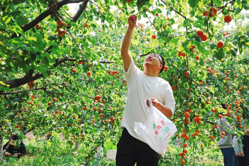 又是一年杏子黃,碩果壓枝正飄香。眼下,江蘇淮安盱眙三河農(nóng)場(chǎng)的杏林迎來(lái)豐收,果香四溢的杏子掛滿枝頭,果農(nóng)搶抓晴好天氣進(jìn)行采摘、分揀、裝箱,一派忙碌的豐收景象。 作者:錢(qián)厚紅 韓磊