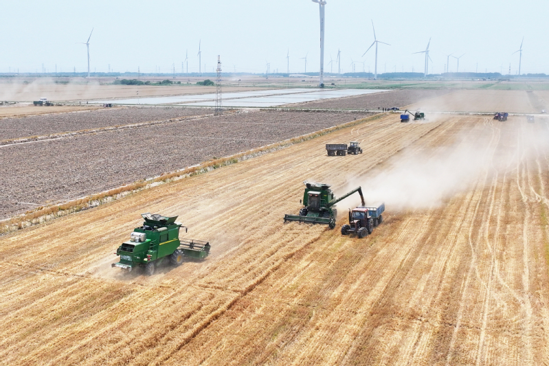 2025年5月29日,鹽城射陽縣江蘇農(nóng)墾臨海農(nóng)場順泰生產(chǎn)區(qū)麥浪涌動,大型聯(lián)合收割機轟鳴作業(yè),率先拉開當?shù)叵氖招←溞蚰?。近年來,農(nóng)場黨委以墾地合作推動發(fā)展,通過技術賦能與鹽堿地改良,昔日鹽堿地蛻變?yōu)椤皣嵓Z田”,為鄉(xiāng)村振興打造國有農(nóng)業(yè)新樣板。