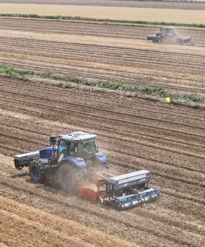 無人化、デジタル化、精密化に対応した九つの工程からなる直播き技術(shù)は、衛(wèi)星測位システム「北斗」を採用し、施肥、二軸式の深層耕起によるわらの均一混合と全量すき込み、整地、鎮(zhèn)圧、畝立て、適切な深さを保った広幅播種、覆土と溝切り、2次鎮(zhèn)圧、排水溝形成を一度に行うことができる。これにより、深く耕した土にわらをむらなく混ぜ合わせる質(zhì)の高い整地や、播種前後の2段階鎮(zhèn)圧と3次元デジタル位置制御による精密な種まきが実現(xiàn)する。耕起深度の不均一からくるわらの土壌還元不足、播種深さのばらつきといった各種難題も解消される。