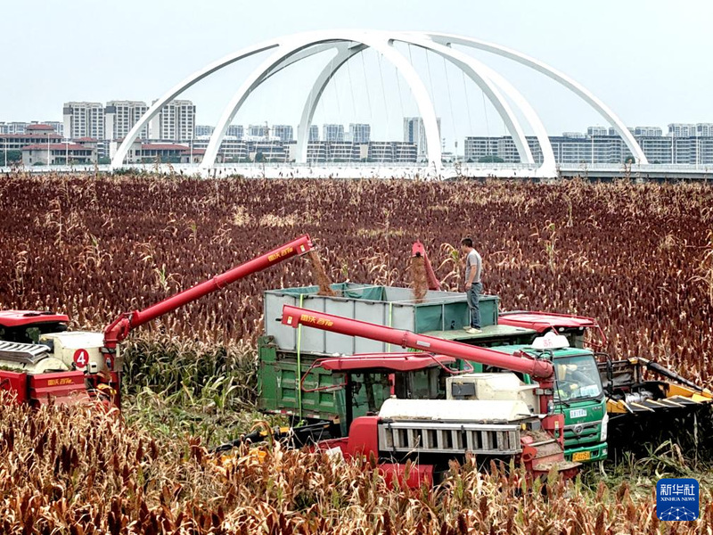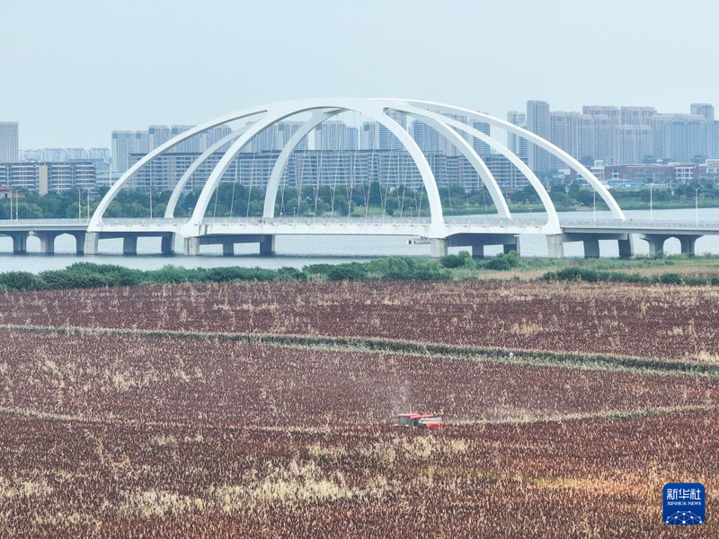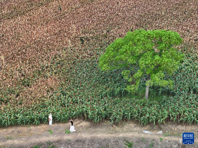 近日,江蘇農墾江心沙農場位于常州金壇長蕩湖和錢資湖畔外拓基地的8000余畝高粱陸續(xù)成熟,迎來采收季。成片的高粱映紅田野,游人在安全地帶打卡拍照,遠處收割機來回穿梭,呈現(xiàn)出生動喜人的豐收圖景。據介紹,該基地位于金壇“陌上花開”生態(tài)環(huán)境整治項目地段內,經過多年努力,“農業(yè)+旅游”現(xiàn)代都市近郊農業(yè)公園雛形初現(xiàn)。