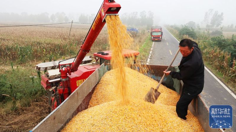 10月11日,江蘇省連云港市海州區(qū)崗埠農(nóng)場(chǎng)工作人員在裝運(yùn)玉米。