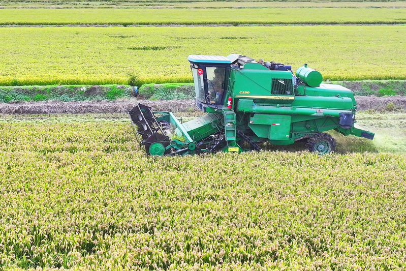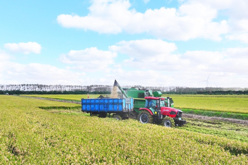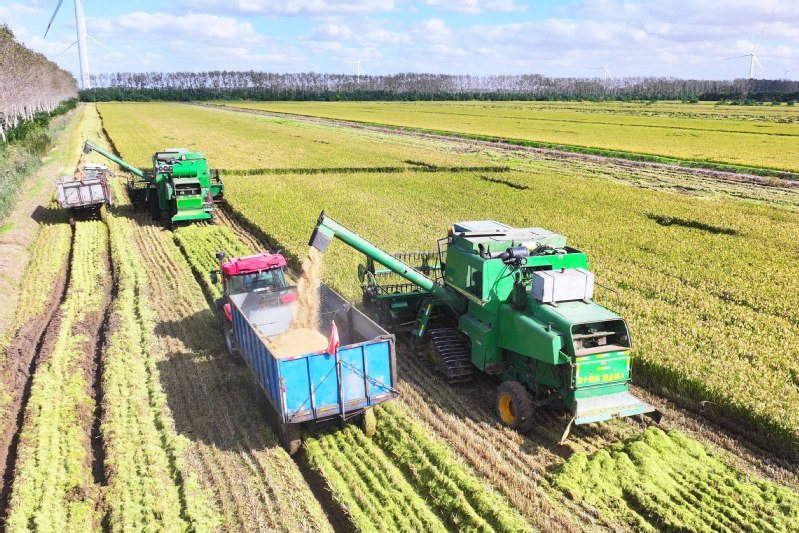 10月22日,在江蘇省鹽城市射陽縣,晴日之下的江蘇農(nóng)墾臨海農(nóng)場(chǎng),萬畝稻田金黃如濤。多臺(tái)履帶式收割機(jī)在田間往來穿梭,將顆粒飽滿的稻谷源源不斷送入運(yùn)糧車,一幅現(xiàn)代農(nóng)業(yè)搶收的繁忙圖景生動(dòng)鋪展。受前期陰雨天氣影響,農(nóng)場(chǎng)以“搶”為令,啟用履帶式收割機(jī)破解濕陷難題,既保障耕地平整,又為后續(xù)播種奠定苗齊苗壯基礎(chǔ)。同時(shí)整合農(nóng)機(jī)與烘干資源,構(gòu)建“收割一運(yùn)輸一烘干”一體化閉環(huán),全力推進(jìn)8萬余畝水稻搶收,為筑牢糧食安全屏障爭(zhēng)分奪秒。