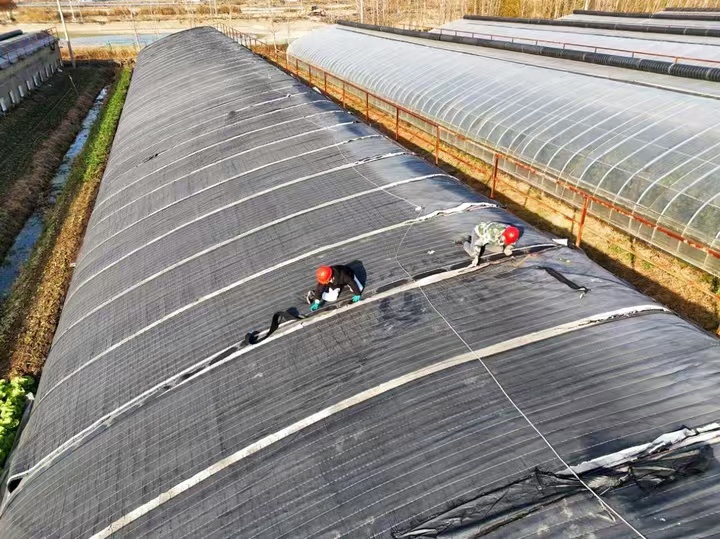 “把保溫膜拉得緊一些,主要是接縫處要全部覆蓋,否則影響保溫效果。”12月1日,在園區(qū)的12號(hào)溫室大棚,工作人員楊維祥和竇雙雙正在修復(fù)破損的外保溫被?!鞍俸匣ㄓ龅胶涮鞖庖矔?huì)‘感冒’,必須營(yíng)造良好的室內(nèi)溫度?!睏罹S祥一邊固定保溫棉被一邊介紹,保溫棉被不僅能夠減少熱量的散失,還能保持土壤濕度,為大棚百合花創(chuàng)造相對(duì)穩(wěn)定的生長(zhǎng)環(huán)境。為保證保溫效果,他們還特別注意保溫棉被的覆蓋密度和固定方式,確保大棚里的百合花都能平穩(wěn)抵御低溫。